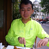 Sunday Brunch: Lisa wanted to see Chinatown, and I had found Le Bambou at 70 Rue Baudricourt. We ordered Vietnamese crepe, some Dim Sum (called Vietnamese Ravioli in the book) and Pho. This was quite disappointing, and the only miss we found in the book. Lesson: don't trust recommendations of white guys for Asian food, even a white guy who's lived in Paris. Cost: 45 Euros.