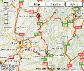 This rest day composed mostly of us riding around meeting Roberto's old friends, then coming back to the Solers' house where Roberto & Mike did some heavy lifting by moving firewood out of the yard into the garage. After that we moved into a hotel in Bourg-en-Bresse and Roberto treated everyone to a get-together dinner.