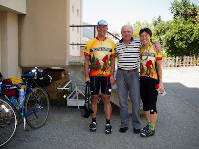 When Lisa and Phil came back, however, he was so charmed that he invited us over to his house for some tea and to hopefully meet his wife. This was how we met Otto Rohrer. Otto's wife was not home, but he offered us tea anyway, and then tried to give us more stuff to take with us, including a club jersey. Otto told us that he had always wanted to go touring, but did not know how, and wanted to help out others who were living his dream. The thing is, he was strong enough to keep up with the local cycle club, so all he lacked was the actual push to go out and tour. People always seem surprised that I get experiences like this when touring, but it's something that happens at least once every trip.
