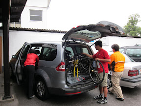 With the trains out of service, we had to explore car rental options. The one way rental option with a drop off in Switzerland proved to be extremely expensive. However, since we were looking for rental during the weekend, we found the local Avis had a mini van rental which had a special weekend rate. Kekoa (who was the only regular stick shift driver amongst us) and I (since I could read German I figured it would be useful to have me in the navigator's seat) would drive the bikes over to Bludenz on Sunday, drop the bikes off at a hotel, and then shuttle back and we could all take the train together. Then on Monday we could take the train into Zurich, and then from there hop onto a train to Meiringen. It was an expensive transfer, costing us nearly 3 days, and more money than I wanted to think about, but since it was raining anyway, those days would have been spent riding in the rain, we thought the investment would pay off in better riding weather in Switzerland.