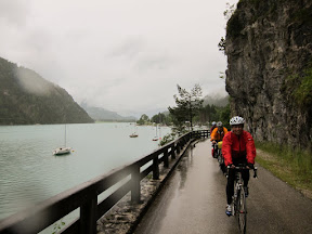 At Achensee, the main road rolls right into the tunnel, but a bike path brought you down to the water, where we got to inspect and admire the lake up close and personal. The rain had seeped into everyone's waterproof clothing by that point, so as soon as we rolled past the lake I was glad to find a cafe that served Goulash soup and gave us a chance to dry off.