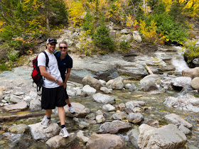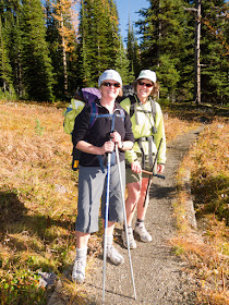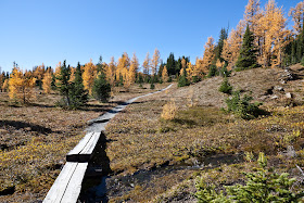 I drove down to the visitor's information to get a back-country permit and a hut reservation for Egypt Lake hut. I remembered the hut system from 14 years ago when my brother and I used it in the height of summer. In the fall and with the temperatures from the last couple of nights I really would rather be indoors somewhere. I got to the office just 5 minutes too early, but an interpretive guide was there early as well. She and I chatted and she told me that if I took the shuttle bus up to Sunshine village that would turn the hike into a loop hike rather than an out and back. That made the trip even more attractive to me, so when I spoke to the ranger that's what I asked about. She wasn't sure if the shuttle would stop running while I was at the hut but since I wasn't planning to use it for the return that was OK. She did talk me into staying at the hut for two nights rather than one night, since she said that there was lots to explore. I was thinking that if I went light and fast I could explore everything in one day since I was relatively fast, but she said that the place was so pretty it was worth hanging out. I did a quick calculation and realized that I had enough supplies for 2 nights, so I agreed.