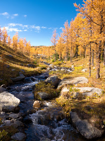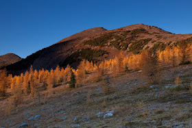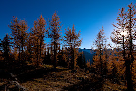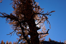 Indeed, when the bus arrived we were surrounded by orangy-yellow pine-looking trees, which were the larch trees. After a quick lunch, I hiked out along the designated path and found myself alone in the wilderness. My pack, which didn't seem so heavy in the parking lot started to feel heavy as I climbed into the forests and into better and better views.