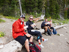 Chris came back and started working on the fire as well. It took him another 30 minutes to get a fire started, but soon the fire was roaring and it started getting warm. Hien came back and put her kettle on the fire so she could make dinner rather than light a stove. Did I tell you that she's tough? It looked like she didn't eat very much at all! We exchanged stories about travel, what was good to explore. Hien highly recommended Whistling pass, but didn't think much of Scarab and Mummy lakes. "How long do you think it'll take to walk there?" "About 45 minutes." I decided that was long enough I did not need to change my usual 6:00am start time. Before bed, I offered ear plugs to everyone who had to share the hut with me, but nobody took me up. I showed everyone where I put the ear plugs just in case.