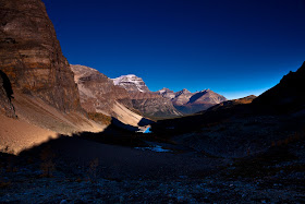 It was really cold in the morning when I got up to Lake Louise. A group of photographers were standing with their tripods out and with their cameras at the ready. Someone who looked like an instructor was going between them looking at their work. In tricky lighting situations like what we're about to encounter, it's very easy to tell the difference between the advanced photographers and the ones who aren't playing the same game: the advanced photographers have