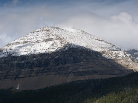 Upon reaching St. Mary's, I headed into the park and found it to be exceedingly windy. In fact, when I found a park bench and lit my stove, it took at least 30 minutes to boil water, since between the reduced alcohol content and the wind my poor stove was simply not getting a chance to heat up the pot at all. With lunch in me, I decided to drive up to Logan pass. It was windy and it was quite clear that as we got up the pass the weather would worsen. Nevertheless, who could pass up Logan pass?