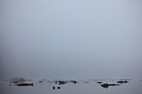 I arrived at the Avalanche creek parking lot to find the place empty, and immediately got out my gear to start hiking up along the creek. I moved as quickly as I could, since I hoped to beat the sun to the lake. It turned out I needn't have bothered: Avalanche Lake was deeply fogged in, and all I got was a monochromatic view of the lake.