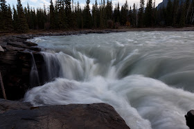 Afterwards, I found out that other photographers were congregated at another site just a little further north, at a designated lookout point. If I had more time I would have tried that as well. I then headed towards Mt. Edith Cavell, which turned out to be on the road leading to the Athabasca Falls. I vaguely remember this set of Falls from 15 years ago, and paused for several pictures and some video.
