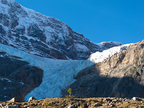 Mt. Edith Cavell's glacier was pretty, with lots of waterfalls flowing off it overhanging a cave. The park ranger told me not to go there, even though there were lots of tourists standing under the glacier getting photos. "The glacier can calve multiple times a day, sometimes with no warning. If you're standing right under it when it does..." She did not have to finish the sentence.