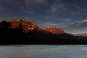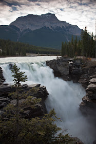 It was mid-afternoon by the time I got off the trail, but I wanted to check out the Columbia Icefield the next day. I was told to stop by the Beauty Creek Youth Hostel to speak to the manager there, whose name was Tim. I arrived around 4:00pm, and he took the time to tell me about possible places to go, one of which I was probably going to use, Wilcox Pass. He mentioned a bush-whack that could get me a better view, but I was dubious about making the trek in the dark. "You do have time to scout it out now, you know." That was a good point. So I hurriedly ate dinner using the hostel's stove, and then drove out, passing what looked like a good Falls for sunset on the way to the start of Wilcox Pass.