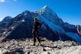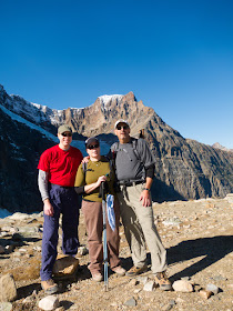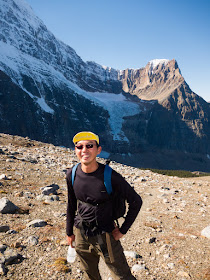 They were not kidding about the steepness and the climb, and in fact, at the start of the scramble I was forced to drop my backpack full of photo gear and my tripod in favor of going light with one lens, the SLR, and of course, my backup camera. I figured my photo gear was safe because if anyone actually tried to steal it while I was scrambling, by the time I came down I'd have a very easy time catching him on the downhill and without a load. The top of the scramble was spectacular, not only lending a great view of Mt. Edith Cavell, but on the other side, an amazing view of the ice field parkway. The wind was very strong and there was no one else around, causing me to have to pile rocks together to make a tripod with which to get pictures.