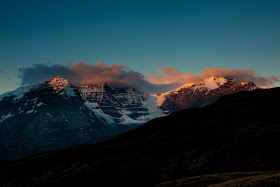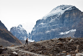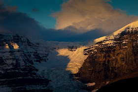 I headed South once again along the Icefield Parkway. Petra had mentioned that the Path of the Six Glaciers was worth checking out, and had said that it was only a 4 hour walk. I could definitely manage a 4 hour walk on top of Wilcox pass. Then after that I could head down to Banff in search of more sunset beauty. The drive was uneventful. I stopped at the Sasketchewan crossing for breakfast and to charge some batteries, and then later on I stopped several times for pictures but in the later morning light it really was futile. I ended up with pictures with muddy washed out colors that wouldn't be interesting at all to anyone else.