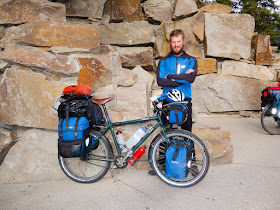 Justin and Nathan had not started riding together, but they were riding together for this segment. They spoke of carrying enough food to last for days, lots of great weather and good cycling. The trip was clearly to their taste and they were enjoying themselves, even though once on the coast they would likely face headwinds if the La Nina year brought early storms to the Pacific North West. We exchanged stories about touring and then I headed South for Banff.