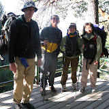 Mike Samuel and Tammy Lin joined Lisa & I at Phil Sung's house on Saturday morning for a hike from Castle Rock to Big Basin. This is the first two days of the Skyline to the Sea walk --- this being Tammy's first backpacking trip and Lisa being unmotivated by winter weather to do more than a 2 day backpack, we opted for just the two days.