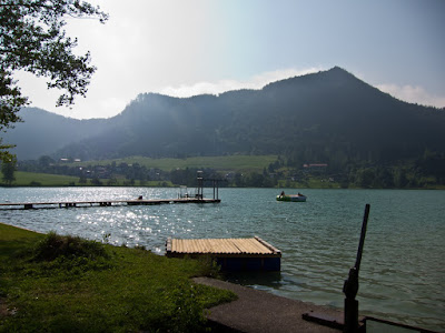 Fusch was at nearly 1000m, so it was with a false coolness that we had a late start to our journey down towards Zell Am See. The road was smooth and there was a bike path. Rolling along on the bike path, however, we suddenly heard a "Hello!" It turned out to be the couple we had seen on Grossglockner highway the day before! They said they were on a 6 week trip, and that they got caught in the thunderstorm yesterday on the way down the mountain, and had to pitch their tent at the campground in Fusch in the rain. They seemed to be in good spirits, all things considered though.