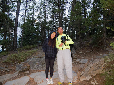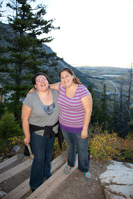 We left some of my batteries charging in her apartment and then drove North to Lake Moraine, which was a much longer drive than expected because of the amount of construction on the highway. The weather was overcast while we were driving, and by the time we got to Lake Moraine it was raining and windy. We were astonished by the bluish color of the lake, but it was so cold we huddled in the gift shop with some hot drinks instead. By the time we were finished with our drinks however, it was pretty outside, and we could walk around the Lake.